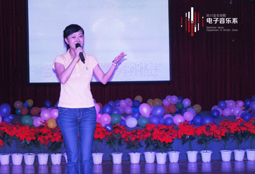 联谊会上,电子音乐系系主任胡晓教授,电子音乐系党支部邓舒副书记都表示希望同学们能珍惜、利用好宝贵的大学时光,祝大家快乐成才、学业有成。联谊会在我系学生会干部的组织下有条不紊的进行,节目内容安排丰富多彩。联谊会在2012级新生刘博文同学的吉他弹唱《记忆中遥远的春天》中拉开了序幕,他那真挚的感情加上特有的嗓音,深深地打动着现场的每一位同学。接着,来自湖南的覃新莲同学演唱了一首励志的、由本人作词曲的原创歌曲《湛蓝色的梦想》,她的歌声深深激励着同学们脚踏实地去追求自己的音乐梦想。同学们表演的男女拉丁舞、女子民族舞、现代舞看得人眼花缭乱,小品《大话西游》让同学们忍俊不禁。