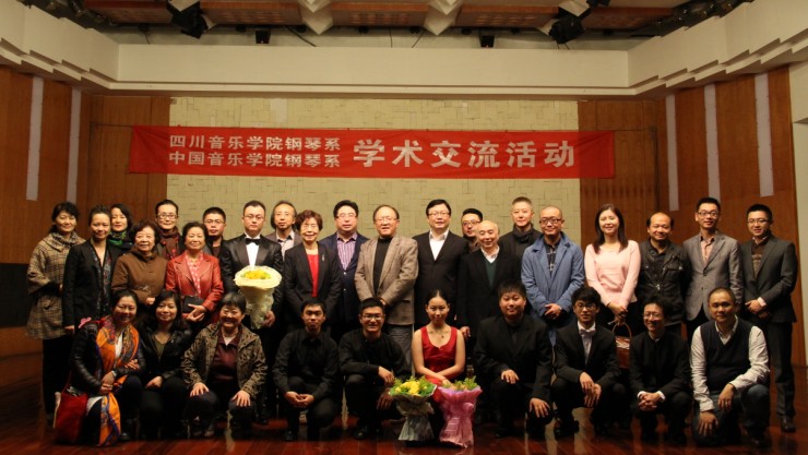 2013年10月28日,在中国音乐学院人事处辛虹处长、教务处郭彪处长、钢琴系主任李民教授、钢琴系党支部书记兼副系主任张维教授的率领下,由该院钢琴系师生等23人组成的中国音乐学院赴川音学术交流团队应邀来我院进行了学术交流和工作访问。