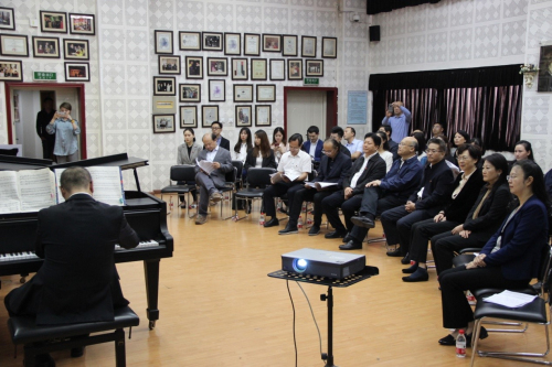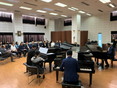 为庆祝新中国成立70周年,结合“不忘初心、牢记使命”主题教育工作,我系党总支10月10日在琴房大楼六楼排练厅开展了主题为“我爱我的祖国”——八手连弹《钢琴协奏曲<黄河>》教研活动。为beat365结合“不忘初心、牢记使命”主题教育开展的“艺术大展演”活动做准备。全系部分党员师生代表和非党教师代表参加了此次的教研活动。 活动中,党总支书记王雁首先围绕活动精神宗旨及中心思想,介绍了对《黄河》协奏曲的研究心得,以及作品的爱国主义情怀,谈了自己的心得体会。教研室主任何沙等四位老师激情弹奏了《黄河》协奏曲片段,参加活动的老师们都深受鼓舞,掌声不断,纷纷表示此次教研活动的选题好,很有意义,很期待看到在“艺术大展演”上的演出。王书记强调,要领悟《钢琴协奏曲<黄河>》所表现的“中华儿女在党的带领下,不屈不挠、团结奋斗并最终夺取胜利”的精神,深刻感悟中华民族历史及中国艺术作品所具有的文化精神内涵,建立起更加坚定的“文化自信”,倡导大家努力发掘和宣传中国钢琴艺术精品,用钢琴奏出具有爱国主义精神的“中国声音”。以“钢琴唱响民族魂”为思路,在专业研究与教学工作中,弘扬、宣传爱国主义和文化自信,积极践行、落实习总书记关于思政教育和爱国主义教育的指示精神。 在教研活动中,恰遇四川省委常委、组织部长王正谱,省委组织部副部长、党建办主任沈晓玲,省委教育工委书记,省教育厅党组书记、厅长李江等一行到学校调研考察。在学院周书记、刘院长,侯书记等的陪同下,专门来到了我系参观调研,王部长对我系将主题教育工作和教研工作的紧密结合高度赞扬,给予了极大的肯定。学院领导也充分肯定了我系党总支的工作。
