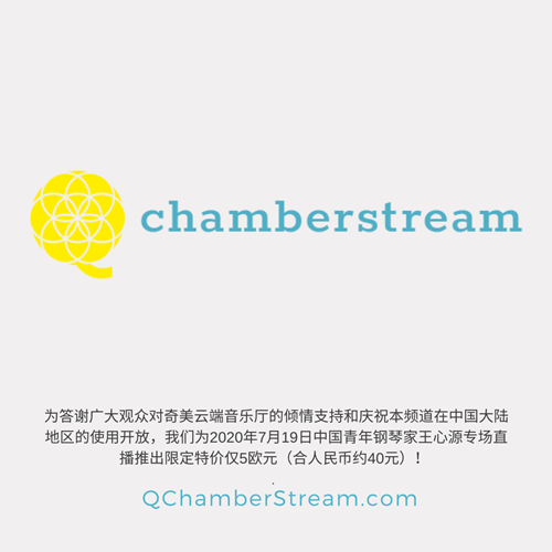 “暨四月至六月新频道成立和数场音乐会被成功直播以来,我们很开心能在这短暂时间内完成了全球范围的观众拓展以及频道在中国的正式开放。目前所有的直播都能够以优秀的速度和质量在中国无障碍延后播出。我非常期待借本次钢琴家王心源精心挑选的曲目来为观众呈现他十分独特和优雅的演奏。我们十分感激频道成立以来全世界各地观众给予我们慷慨的捐款,这份莫大的帮助使我们得以走到今天。同时为致中国观众以最大的诚意,团队决定对本场音乐会从原价25欧元降为感恩回馈价5欧元。”