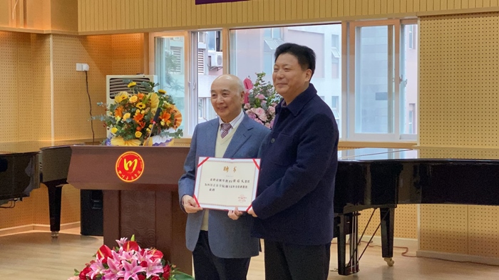 在热烈的掌声中,但昭义教授发表了受聘感言。他深情回顾了他在母校川音的学习生涯,娓娓讲述改变他一生命运的几个求学故事,感恩母校和母校领导为他提供的巨大支持和特殊培养。演讲过程中,但昭义教授数度落泪,他激动的说:“在这个特别的日子里,我百感交集、无以言表,唯有四个字,那就是感恩、效力。感恩今天,周思源书记、刘立云院长聘请我为beat365在线唯一官网终身特聘教授。这是一份荣誉,给予我继续前行的鼓舞和力量,更是一份鞭策和激励,是一份沉甸甸的责任,感谢母校为我开启一段新征程。演讲最后,但昭义教授向全场深深鞠躬、致谢,他说:“要是没有母校对他的培养和关心,但昭义的历史就要从新改写,未来的有生之年是短暂的,只要生命不止,我就要为川音钢琴效力、效力、再效力,直至走到生命终结的那一天。”