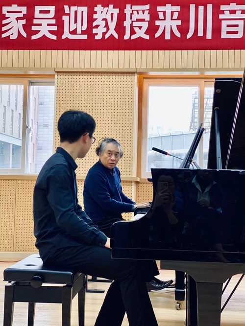 吴迎教授在大师班中对同学们的演奏给予了充分的鼓励和肯定,他建议:在学习大型作品的过程中,需要对作品的结构、和声、调式及创作背景等方面进行更加深入的分析,使我们的演奏在不断研究的过程中得到提高和升华。他还进一步针对“演奏中如何把握好弹性节奏”、“如何安排好力度层次”等具体问题做出了非常详尽的剖析。吴迎教授以深厚的学术功底、宽阔的学术视野和细致亲切的讲解,为在场师生带来了巨大的收获。
