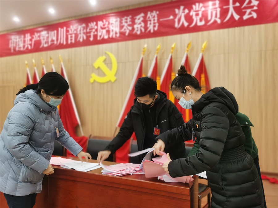 大会采用无记名投票的方式,选举产生了钢琴系第一届“两委”班子,刘芸秀、叶清兵、何沙、杨成刚、陈玮当选为党委委员,杨成刚、贾曦、冯怡当选为纪委委员。
