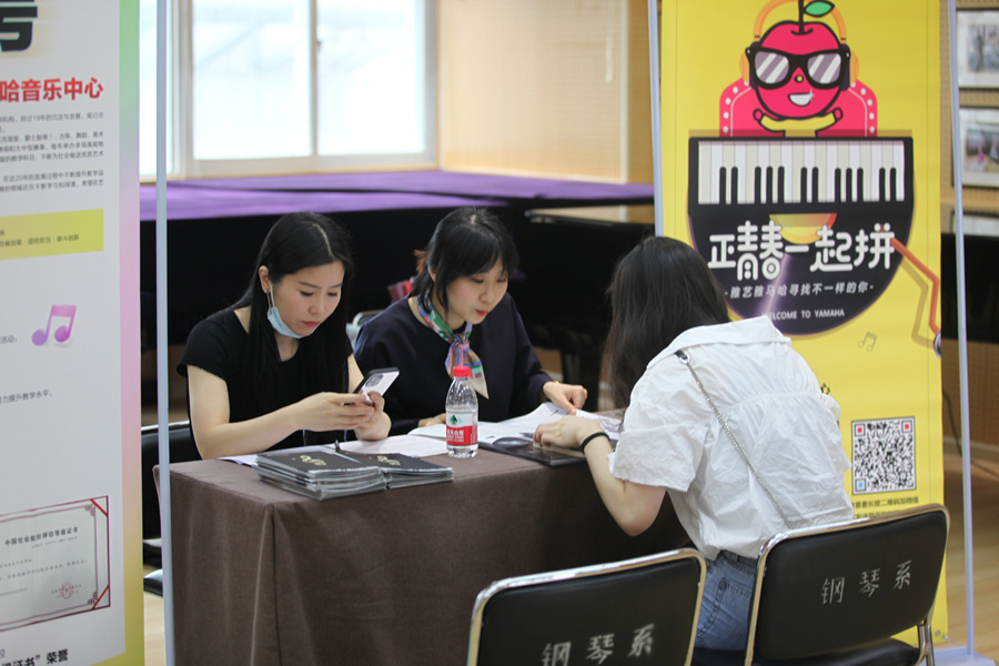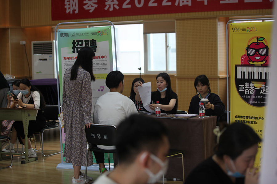 本次双选会通过系领导班子带头联系用人单位,发动全系教师对接企业等多渠道,最终确定了成都市星雅艺教育咨询有限公司(成都刘诗昆&雅马哈音乐中心)、成都金柠檬教育科技有限公司、柏斯琴行(四川)有限公司等7家企业参与本次就业双选会。双选会采取企业招聘宣传与毕业生现场咨询、面试答疑等多种方式,吸引了钢琴系2018级、2019级本科生及2019级研究生近100人参与,为期2个小时的招聘现场气氛异常热烈。经过前期筛查,参与本次双选企业所提供的岗位以钢琴教育教学、器乐顾问或文化公司运营管理等相关岗位为主,许多企业提供的薪资待遇让不少毕业生心动。部分即将毕业的大三学生也积极参与其中,提前了解就业市场和人才需求,为有针对性完善自身素质,顺利走上工作岗位打下坚实的基础。