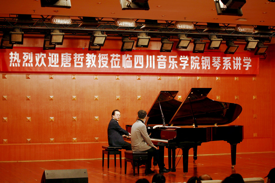 2022年11月15日,上海音乐学院钢琴系教授、博士生导师唐哲教授应邀在我院星海乐厅成功举办大师班讲学,对钢琴系三位附中学生进行了专业演奏指导。