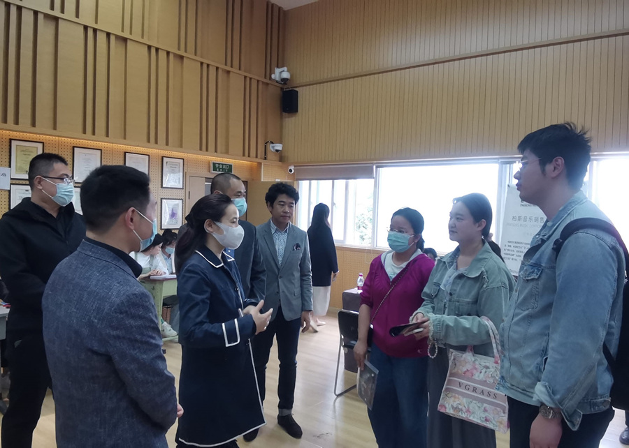 学院党委常委、钢琴系党委书记刘芸秀等党政班子领导、学生处就业指导中心和部分毕业年级教师到现场指导,并与企业进行了亲切友好交流和沟通。