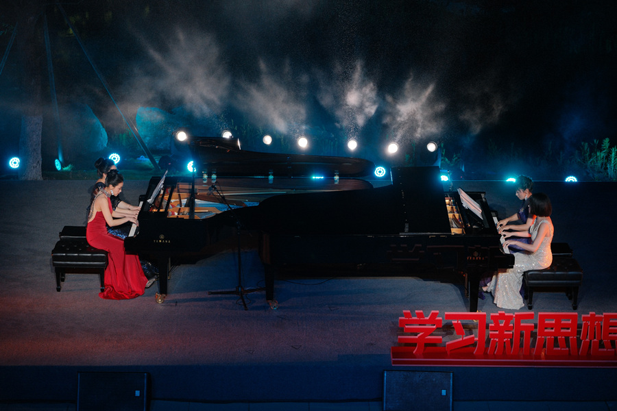 近年来,学院党委鼓励师生对演奏乐曲进行了“再创作”,把革命传统教育、爱国主义教育、先进典型教育融入其中。其中,由学校党委常委、副院长、钢琴专业教授王雁创意策划,作曲系宋名筑教授选取五首经典中国歌曲片段改编而成的双钢琴重奏《琴声里的中国》,传达出中国人民在中国共产党的带领下,向着实现中华民族伟大复兴的中国梦,阔步前行的决心;由钢琴系何沙教授根据川音老教授、著名小提琴家、作家杨宝智先生的同名钢琴五重奏改编的双钢琴重奏《边陲速写》,描绘了少数民族群众载歌载舞欢庆节日的情景;《彝山舞乐》《从头越•源起》则是川音主办《经典传承 琴韵新声》中国钢琴创编新作品比赛中获奖作品,展现了欢腾热烈的民俗节庆场面。
