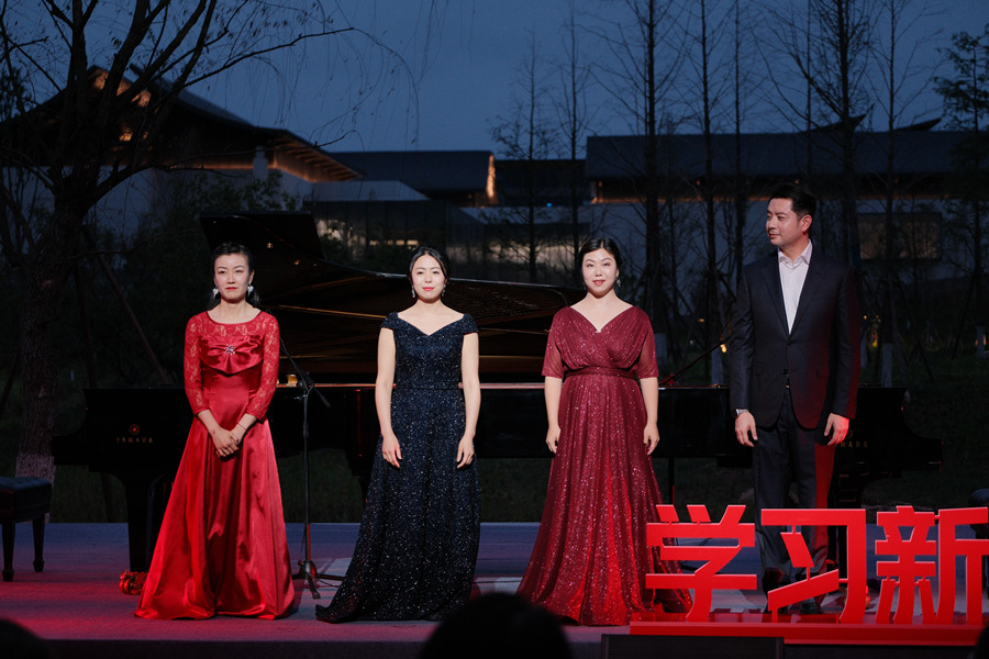 六月的川音临空经济区校园草木苍翠,楼台掩映,山水美院,一派生机盎然。聚焦学校党委“高质量党建引领高质量发展”这一调研选题,为破解临空经济区校区刚刚建成不久,存在师生业余文化生活不够丰富的实际问题,6月2日,一场别开生面的“学习贯彻习近平新时代中国特色社会主义思想主题教育音乐党课”在校园隆重开展,省委第二十二巡回指导组姚部长一行到场指导,学校党委书记文云英,党委副书记侯钫,党委常委、副院长牟文虎,党委常委、组织部长刘芸秀等学校领导以及资阳市政府有关领导也到现场与同学们一起聆听了音乐党课。