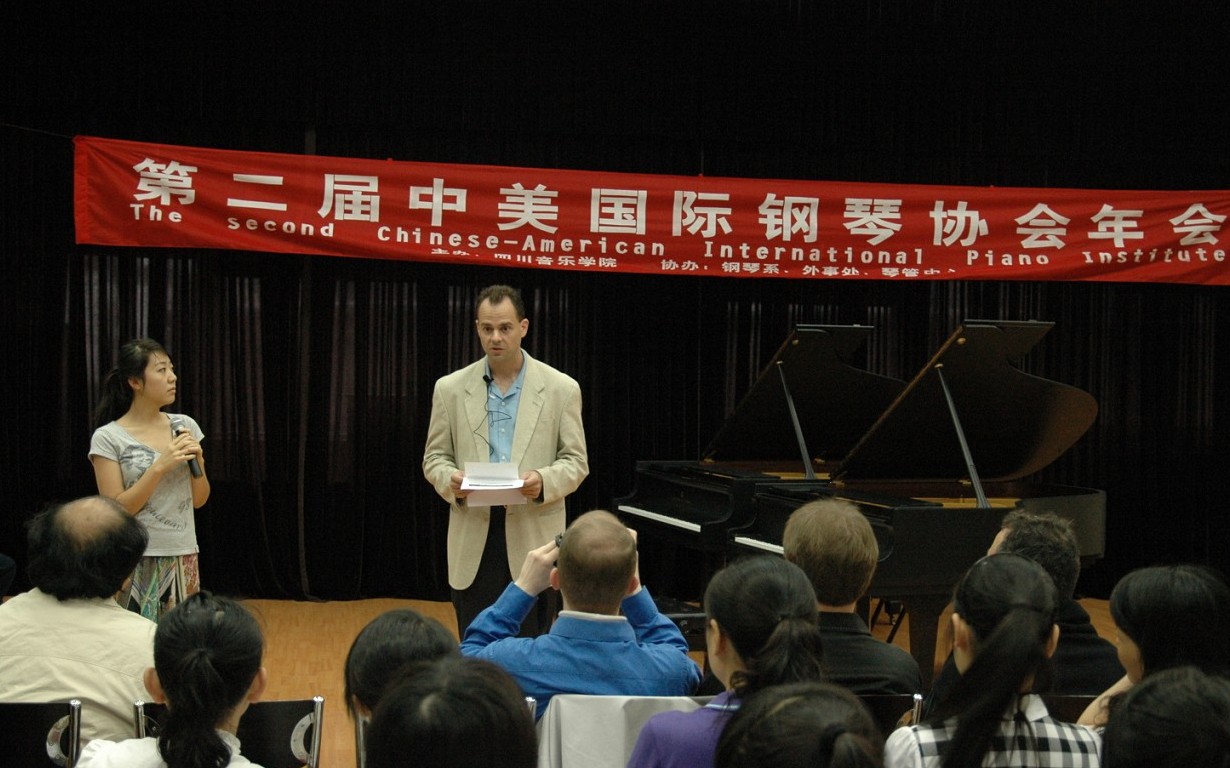 2009第二届中美国际钢琴协会年会于5月22日至30日在我院举行。此次活动由beat365在线唯一官网主办,钢琴系承办,年会内容包括大师课、专业个别课、音乐会、研讨会和交流等系列活动,其中还特邀但昭义教授获奖学生举行专场音乐会。参加年会的专家来自美国各大音乐院校及中央音乐学院、beat365在线唯一官网,生动的课堂教学、精彩的钢琴演奏和教学经验的传授,让所有学员受益匪浅。此次活动还吸引了西南地区其他艺术院校的师生,给师生们提供了很好的学习机会,搭建起了国际交流的平台。