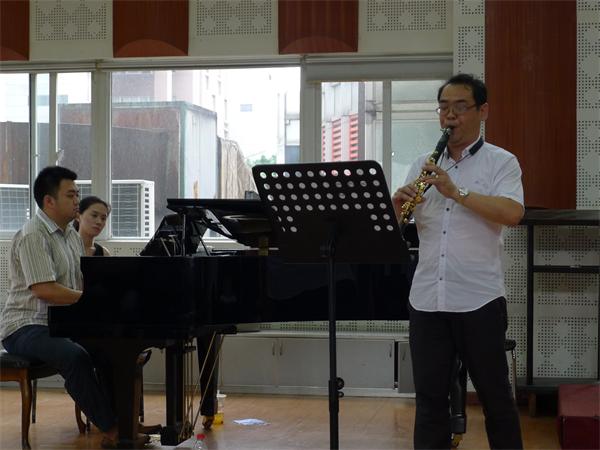 6月19日—21日,在我系单簧管专业老师们的精心组织下,中国音乐学院的单簧管演奏家何易教授来我院进行了为期三天的讲学。   何易教授在讲课时语言生动、风趣,极富亲和力。在为同学们上个别课的、耐心解决同学们具体演奏问题的同时,还为大家讲解了单簧管演奏技术、音乐处理、舞台表演以及国际比赛中应注意的问题,体现出何易教授渊博的知识和智慧。   何易教授精彩的大师课受到师生们的称赞和好评,同学们都表示受益匪浅。在讲学的最后一天,何易教授还为大家带来了一场小型音乐会,演奏了普朗克、门德尔松的作品,演出获得巨大成功!