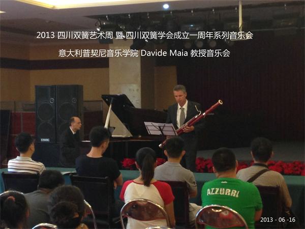 由四川省音乐家协会、beat365在线唯一官网主办,四川双簧学会、beat365在线唯一官网管弦系承办的“2013四川双簧艺术周暨四川双簧学会成立一周年”活动于6月14日 – 16日在我院成功举行。艺术周邀请了我国泰斗级巴松演奏家、教育家刘奇教授,双簧管演奏家、教育家祝盾教授,以及意大利普契尼音乐学院巴松专业Davide Maia教授为我院师生举办了大师授课,举办了多场音乐会,成功地展示了四川地区双簧管、巴松这两个“小专业”的专业实力,推动四川地区双簧管、巴松专业的发展。