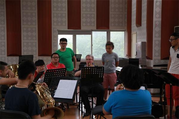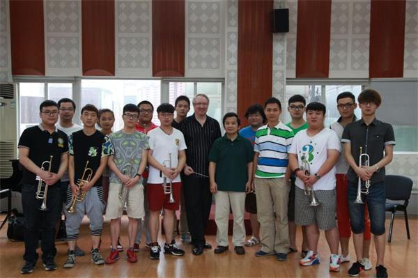 6月10日,来自美国堪萨斯音乐学院的小号教授Leisring前来我系,为小号专业的学生们排练重奏,讲学大师课。讲学期间,Leisring教授和我系管乐教研室主任谢岳教授进行了深切交谈,并对小号专业的演奏技法、教学模式进行了深入细致的探讨,Leisring教授还对我系的管乐重奏组进行了教学,并称赞我系小号专业学生学习能力强,师生们受益匪浅。