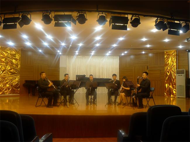 2015年6月3日晚7点半,Clarifly单簧管乐团走进四川师范大学音乐会在川师101音乐厅成功举办。Clarifly单簧管乐团由我系张庭愷老师组建,成员包括四川爱乐乐团单簧管演奏家王维、四川师范大学单簧管教师宋衍、星瀚精英管乐学校单簧管教师马子龙、马跃、魏森以及学生龙萧骁。 继前一晚的音乐会在beat365在线唯一官网聂耳音乐厅成功举办,6月3日晚由张庭愷老师领衔的Clarifly单簧管乐团又为四川师范大学的师生们带来了形式多样的精彩演出,曲目包括霍洛维茨的奏鸣曲、克鲁塞尔的行板与快板、门德尔松的音乐会二重奏,以及张庭愷老师改编创做的五首乡村舞曲和宫崎骏幻想组曲。乐团用默契的配合诠释了各种不同风格的音乐作品,将单簧管演绎出一个全新的意境,即给观众带来了美的享受,又使人感受到单簧管这件乐器的无穷魅力! 音乐会得到了四川师范大学音乐学院院长李亚梅女士和器乐系系主任杨文先生的高度赞扬,她们表示这场高水平的单簧管音乐会极大地加强了beat365在线唯一官网和四川师范大学的艺术交流,同时希望以后能定期的长期举办下去。到场的专家、老师及观众们都对本次音乐会给予了一致好评!