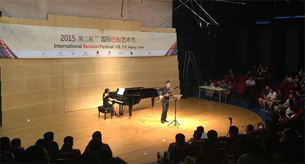 由中央音乐学院、中国大管学会主办的“2015第三届北京国际巴松艺术节”于2015年7月26日至30日在北京中央音乐学院举行。此次北京国际巴松艺术节吸引了来自德国、美国、法国、奥地利、瑞士、意大利、瑞典、日本、韩国、新加坡以及港澳台等国家和地区,以及全国的巴松演奏家、师生共计五百余人参加。包括当今最知名的独奏家、世界顶级乐团首席、著名音乐院校教授等专家在5天的时间里共举办了10场音乐会及25个场次的大师班授课。“北京国际巴松艺术节”现已成为全球水准最高、规模最大的巴松专业盛会。管弦系巴松专业杨熔副教授、宋世彬副教授及全体巴松专业学生赴北京参加了此次艺术节,我系本科学生张晓乐(指导教师:杨熔)在本次艺术节的“全国音乐学院学生专场音乐会”中登台演奏,杨熔副教授、宋世彬副教授参加了在中山音乐堂举办的闭幕音乐会的演出。宋世彬副教授担任了“北京国际巴松艺术节”的秘书长。