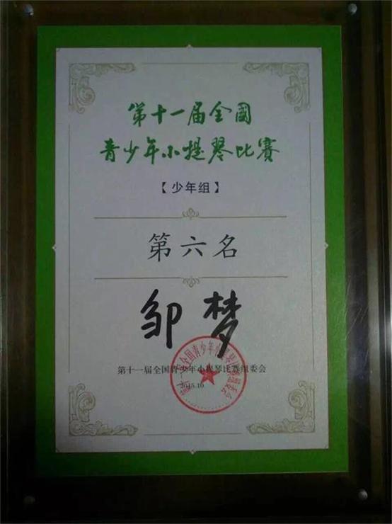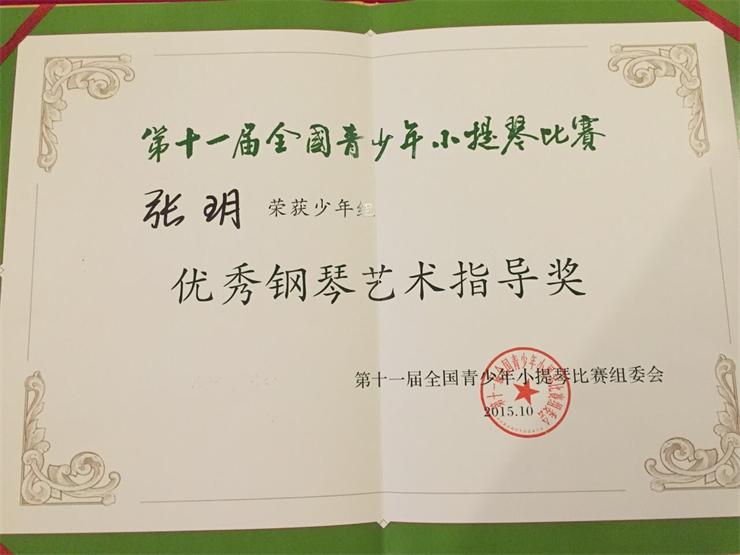 2015年10月28日-11月8日.在青岛举行的“第十一届全国青少年小提琴比赛”中,我院附中初二学生邹梦荣获少年组第六名,我系李开祥教授获“园丁奖”、管弦系张玥老师荣获“优秀钢琴艺术指导奖”。 此次比赛,我院共有6名选手通过了残酷的预选进入正式比赛。经过第一轮的激烈竞争,附中高二学生谢子寅、初二学生邹樟、邹梦共三人分别进入青年组和少年组的第二轮,他们都展示了自己的最好水平。最后邹梦进入决赛,他顶住了巨大压力顺利完成比赛,并最终获得少年组第六名。这是我院30多年来参加该项比赛在该组别取得的最好成绩。我系钢琴伴奏张玥老师荣获“优秀钢琴艺术指导奖”,这也是该项比赛自1981年创办以来首次将该奖颁给地方院校。李开祥教授获“园丁奖”。