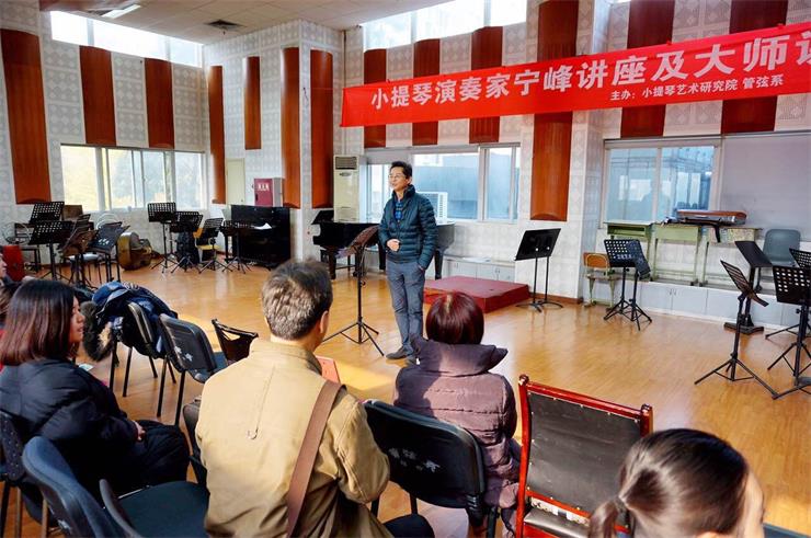 12月24日下午15:00beat365在线唯一官网小提琴艺术研究院副院长宁峰回校讲学,讲学现场人气空前的高涨,现场座无虚席。科研处处长雍敦全;小提琴艺术研究院院长易柯;小提琴艺术研究院副院长李开祥,青彦言、陈兴延老师以及管弦系师生出席了本次讲学。宁峰在讲学的过程中,演绎了精彩的技术,讲解了技巧中蕴含的音乐,给邹樟、邹梦、谢子寅、康蜜夏等同学上课的同时也给现场所有师生讲解了小提琴演奏中应该具备的音乐素养以及演奏技巧,也使得现场艺术气氛空前浓烈,为我院系师生在音乐造诣方面的提高产生积极的影响,反响热烈.