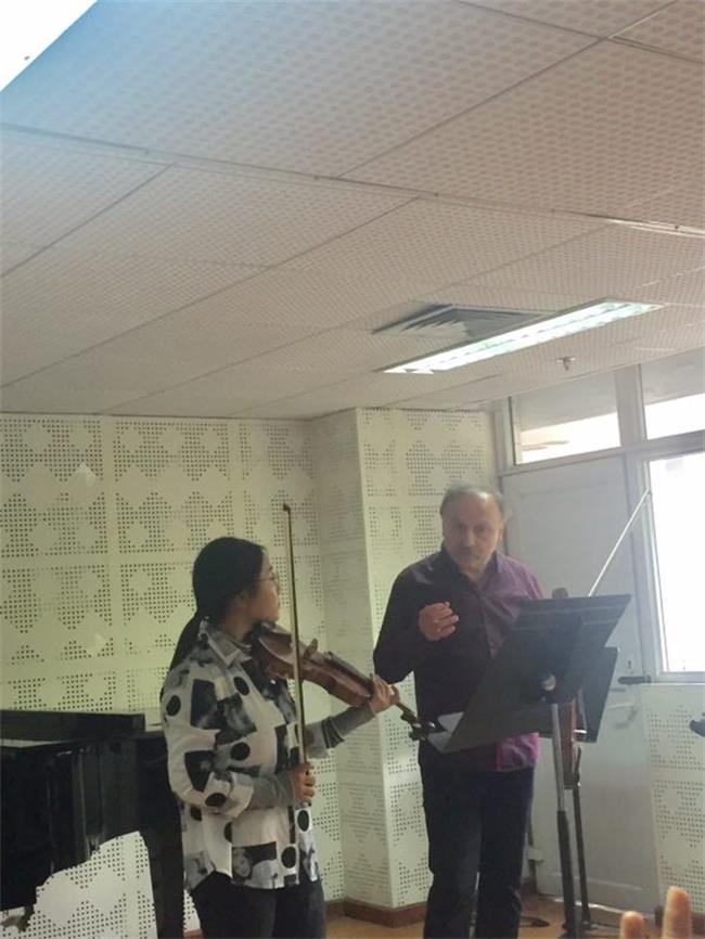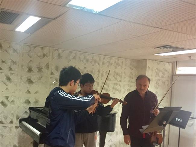 由外事办、管弦系、小中提琴教研室承办法国比才艺术中心依夫普赛尔大师课于4月12日顺利完成。 附中学生邹璋、邹梦、钱琳分别演奏普罗科菲耶夫小提琴二重奏,流浪者之歌,专家指导认真细致,同学们受益匪浅。