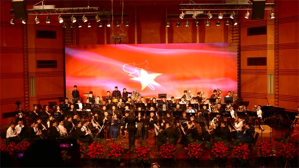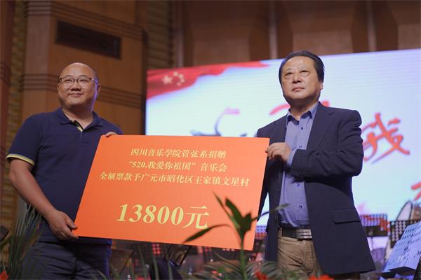 2019年5月20日晚,由管弦系主办,现代器乐系、川音尚美文化传播有限公司、我院交响乐团协办,联合四川青少年交响管乐团、成都耳闻艺术、成都濡歌文化,在我院大音乐厅用激昂振奋的音乐和旋律为到场的观众奉献了一场极具魅力的“红色大餐”。 音乐会主题——庆祝新中国成立70周年,回顾历史,传承文化,怀念感恩,爱我中华。音乐会中演奏了大量红色经典交响作品,其中包括《红旗颂》、《北京喜讯传边寨》、《我爱你中国》、《我和我的祖国》等经典作品,也有表现青少年朝气蓬勃成长的《歌声与微笑》、《少年先锋队队歌》等作品。 音乐会在小号教育家、演奏家谢岳教授的挥棒下拉开帷幕,悠扬抒情的开场曲《我和我的祖国》瞬间点燃了现场的氛围,博得在场观众的阵阵掌声。 中场进行了扶贫捐赠,由管弦系主任蔡宇教授将这场音乐会的全部票款共计13800元人民币捐赠予我院派驻广元市昭化区王家镇文星村第一书记黄健钧,用于我院精准扶贫对象---广元市昭化区王家镇文星村,希望这一份小小的心意为当地带来帮助,也为祖国的扶贫事业尽一份绵薄之力。最后,全场观众起立,台上台下放声高歌《歌唱祖国》,将音乐会推向高潮,并在群情激昂的歌声中圆满落幕。 本次音乐会成功举办,对于在场的每一位观众都是一场爱国主义教育,不忘初心,牢记使命,继承和发扬中华民族的优良传统始终是激昂的主旋律,是激励我们自强不息的强大力量。