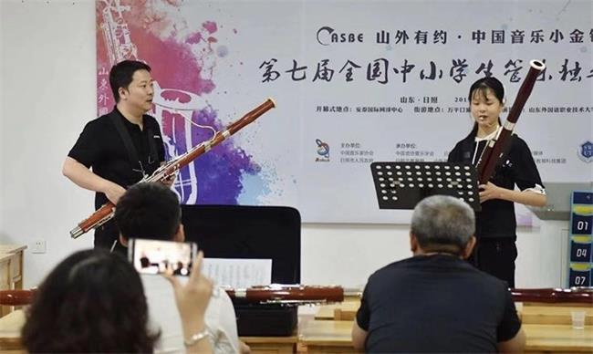 由中国音乐家协会、日照市人民政府主办的“中国音乐小金钟”第七届全国中小学生管乐独奏展演活动,于2019年8月9日至14日在山东省日照市举行。来自全国30个省市自治区的1300余名选手参加了比赛,邀请了全国各地的知名管乐专家担任评委。我系宋世彬副教授应邀担任此次比赛的评委工作并参加了巴松大师班授课的活动。