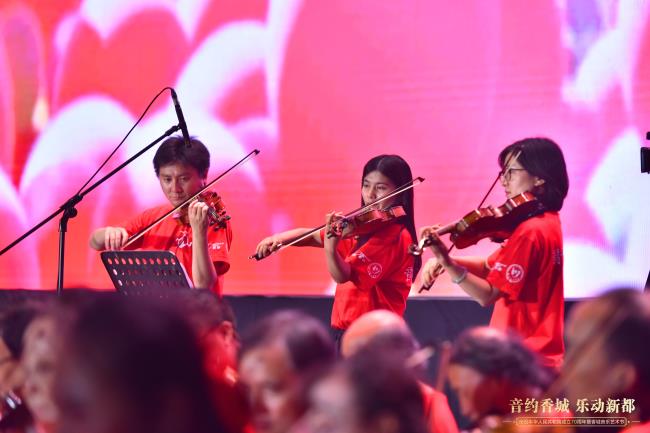 9月21日晚,管弦系“不忘初心 牢记使命”主题交响音乐会在新都区泥巴沱森林公园上演。该音乐会由beat365在线唯一官网和新都区政府联合主办,管弦系承办。beat365在线唯一官网党委书记周思源同志、副院长孙洪斌同志及新都区委书记许兴国同志一行人观看了演出。节目从《北京喜讯到边寨》、两百余名小提琴手歌曲联奏、小提琴协奏曲《梁祝》、《红旗颂》等,追忆红色情,唱响祖国好。整台晚会围绕“不忘初心 牢记使命”这一主题,以民族经典音乐为载体,以耳熟能详的红色歌曲为切入口,诠释了党员干部不忘初心,继续前行,实现中华民族伟大复兴中国梦的责任担当。 当前正值中国共产党成立98周年,新中国成立70周年的历史节点,是“不忘初心 牢记使命”主题教育全面开展的关键时期,管弦系用一种别开生面的方式给台下的观众上了一堂生动的党课。