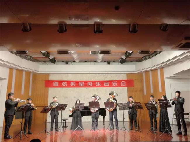 我系室内乐音乐会于2019年12月20日在川音小音乐厅成功举办。本场音乐会结合不忘初心,牢记使命主题教育,共有十个重奏组登台演奏,包括木管重奏、铜管重奏、弦乐四重奏等多种组合形式轮番登场,获得在场师生的热烈欢迎!音乐会在铜管重奏《我爱你 中国》的旋律中结束。同学们通过这次登台亮相,检验了在本学期重奏课程中所学的技能,充实了舞台实践经验。