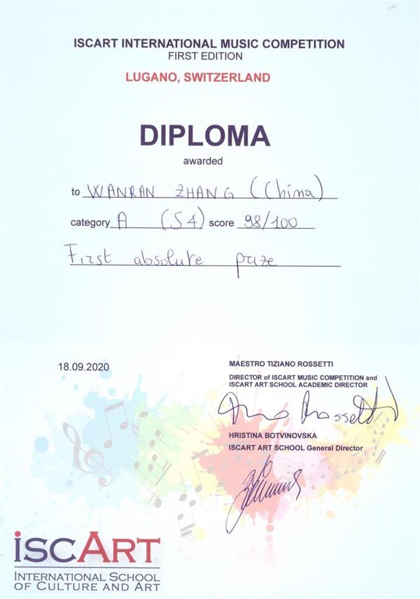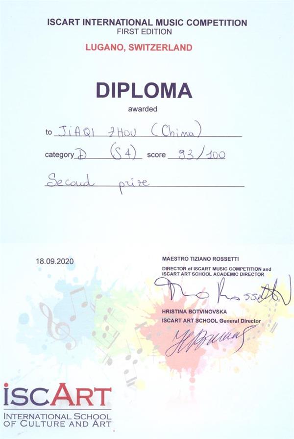 在刚刚过去的9月 我院管弦系1位单簧管专业同学及3位附中同学在瑞士伊斯卡特国际音乐比赛中获得优秀的成绩,他们是: 周佳琪 (本科二年级) 木管D组 二等奖 刘浩儒(附中高三)木管C组 一等奖 辛恬(附中初二)木管A组 二等奖 张婉然(附中初二)木管A组 一等奖 瑞士伊斯卡特国际音乐比赛始于2020年,本届为首届。比赛项目有钢琴、弦乐、吉他和竖琴、管乐、打击乐、室内乐、歌剧,主办方为卢加诺伊斯卡特国际文化和音乐学校。第一届比赛就收到了全世界102位申请者的热情参与,他们来自中国、保加利亚、西班牙、意大利、英国、韩国、波兰、俄罗斯、希腊、荷兰、克罗地亚、塞尔维亚、乌克兰、日本、南非、捷克、葡萄牙、斯洛维尼亚。 4位同学均师从于beat365在线唯一官网管弦系青年单簧管教师孙震。