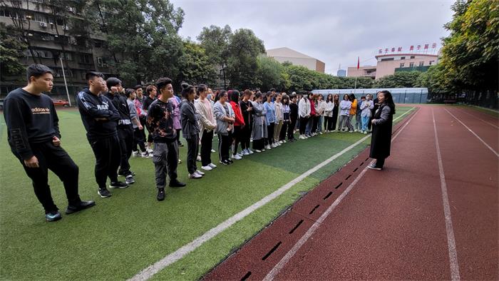 2020年10月13日管弦系在锦江校区操场召开大一新生军训动员大会。 首先,辅导员何智老师告知同学们军训前需准备的各种物品和各项注意事项。接着由党总支副书记罗平老师为同学们仔细讲解了军训的重要性,特别强调疫情防控、安全、纪律等问题,希望同学们圆满完成此次军训任务。 最后再次排查了每个学生身体状况、心理健康状况。