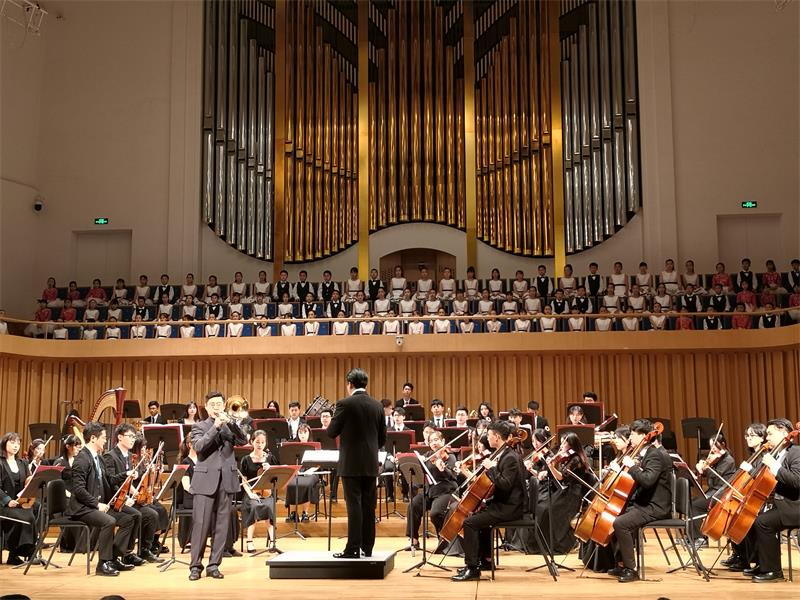 本场音乐会特别邀请了中国著名长号演奏家、中央音乐学院长号教授、博士导师、管弦系副系主任刘洋老师为大家带来由劳尼▪格隆达尔的长号协奏曲。音乐会下半场以清脆欢快的竖琴降B大调协奏曲开场,由年仅8岁的刘熙语格小朋友演奏,撩动的琴弦如晶莹般的鹅卵石点缀欢畅的浅溪,如从透明的水晶里传出的清凉灵动。音乐会的最后全场高唱《没有共产党就没有新中国》,将音乐会推向高潮,共同为祖国的繁荣昌盛而感到自豪。