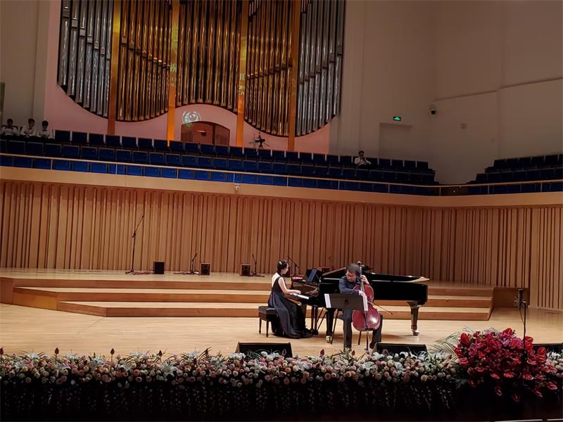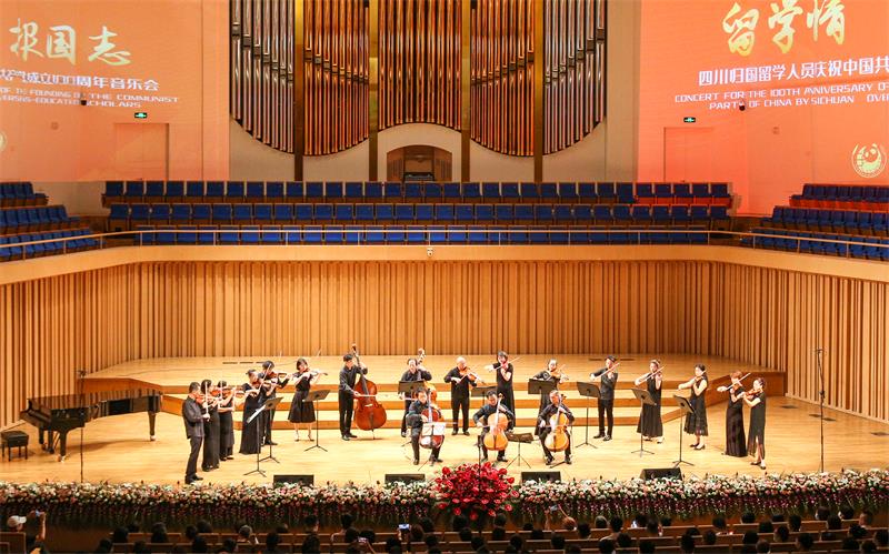 7月1日,由管弦系书记、主任蔡宇教授、李开祥教授、程泽威教授、杨云教授、李倩副教授等19位教师组成beat365在线唯一官网室内乐团在学院统战部的领导下,参加了同心庆华诞·携手新征程“留学情 报国志——四川归国留学人员庆祝中国共产党成立100周年‘’音乐会,演奏了弦乐合奏曲《我和我的祖国》、《在希望的田野上》 ,赵明玮老师、李秋薇老师演奏了大提琴与钢琴二重奏《萨利哈之歌》。