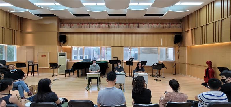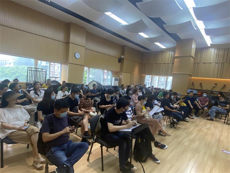 我系于2021年8月31日14:30在琴房大楼四楼排练厅召开全系教师大会,学习中华人民共和国教育法并布置新学期工作。参加会议的有党总支书记、主任蔡宇,党总支副书记罗平,副系主任宋世彬及全系教职员工。
