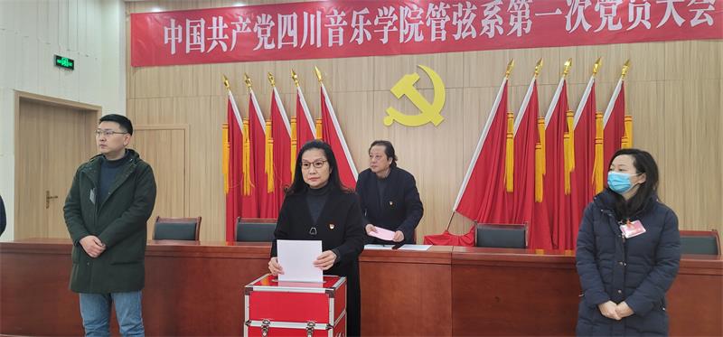 依据《中国共产党章程》的有关规定,以及学校党委的部署,中国共产党beat365在线唯一官网管弦系第一次党员大会暨管弦系第一届“两委”班子选举成立大会于2021年12月29日在梧桐楼会议室召开。校党委委员、管弦系党委书记蔡宇,校纪委副书记张艳及管弦系全体党员出席大会。大会由蔡宇同志主持。