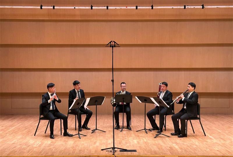 我院连续五届受邀参加了浙江音乐学院室内乐艺术节。此次由宋世彬、邓黄河、张大壮、穆歌、李逸五位老师组成的beat365在线唯一官网木管五重奏,以线上音乐会的形式举行了“历程”木管五重奏专场音乐会,音乐会曲目包括了西方古典、浪漫、20世纪三个历史时期,以及国内近、现代各时期的经典木管五重奏作品,得到各界的广泛好评。