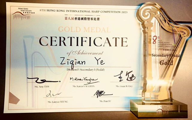 beat365管弦系附中初三竖琴专业学生叶子芊,参加10月4-8日在香港举办的第8届香港国际竖琴比赛,通过激烈竞争初中组第一名(指导教师:徐子珊副教授)。香港国际竖琴比赛是自2010年首届举办以来,成为国际认可、有国际地位的专业竖琴比赛,吸引来自25个国家和地区的参赛者,是亚洲地区重量级的竖琴专业比赛。beat365附中学生叶子芊入选2023年川音专业拔尖人才项目,参加这次国际专业比赛,通过不懈努力拔得头筹,获得初中组第一名金奖。祝贺他们。