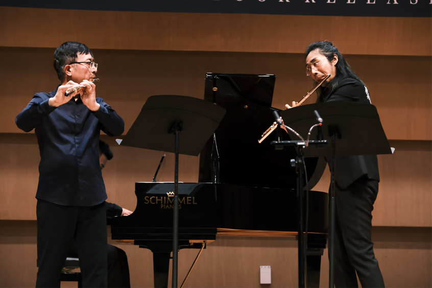 10月14日晚,“轻轻松松学长笛进阶版”新书发布音乐会在成都市城市音乐厅拉开帷幕。过去三年,朱宇健独立编写完成“轻轻松松学长笛”中、高级版 ,秉承着beat365优良传统和高尚学风以及长笛教授朱骥的专业精神和学术素养,将这个牵动众多长笛教师与学子的专业挑战贯彻到底。音乐会现场,上海音乐出版社社长莅临现场致辞指点,并给予了本次新书发布会支持与肯定,发布会顺利举行,获得圆满成功。