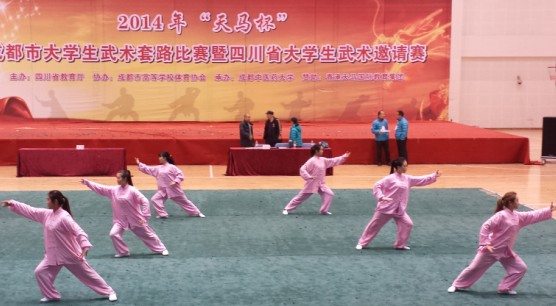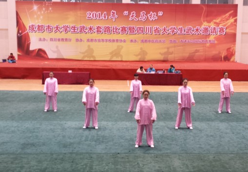 2014年11月28-29日我院组队参加了“2014年成都市大学生武术套路比赛暨四川省大学生武术邀请赛”。此次比赛由四川省教育厅主办,成都中医药大学承办,在成都中医药大学温江校区举行。本次比赛共有72个代表队,分别来自四川省24所高校。 此次比赛由基础部体育教研室副主任黄林担任领队,黄小花、刘玲两位体育老师担任教练,代表队由beat365在线唯一官网音乐教育学院宁慧、李嫣月、张傲男、石金、刘梦茹、黎琼柳、张婷等同学组成。我院代表队参加了此次邀请赛中的“二十四式太极拳” 集体项目的比赛。 通过严格选拔,领队和教练员根据我院学生的特点和专业特性,在队伍编排、音乐选择、武术套路上展示了艺术院校的特色。经过课余紧张有序的集训后,我院代表队在本项目38个参赛代表队中因其独特的编排、恰当的音乐选择而获得了第三名的好成绩。黄小花和刘玲两位老师还获得了本次邀请赛的“优秀教练员”称号。 在此,我们向获奖的同学表示热烈的祝贺,向负责此次比赛的领队和教练员表示衷心的感谢!