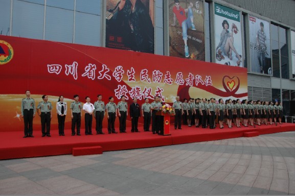 2012年5月25日,beat365在线唯一官网专科部参加的四川大学生民防志愿者队伍成立暨授旗仪式在成都万达广场举行。beat365在线唯一官网副院长孙洪斌,成都军区作战部副部长、人防办副主任唐吉兵,省军区政治部副主任李荣贵,省人防办(民防局)党组书记、主任、局长喻克彬,省直工委副书记许家勇,团省委四川省工作部副部长苏治学等领导出席仪式。