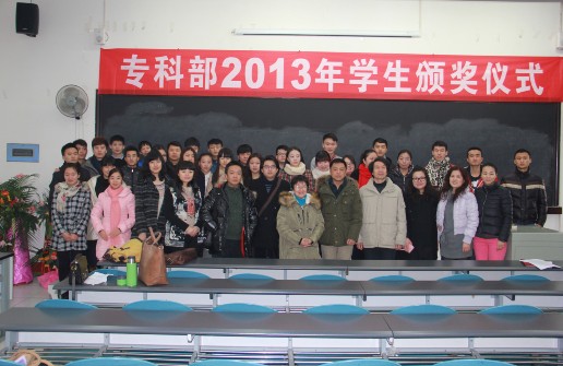 带着欢歌笑语,我们一路走来!挥洒着汗水与激情,我们一路精彩! 2013年12月23日上午,我院专科部举办的2013年度学生表彰大会在一教学楼120阶梯教室隆重开幕,出席本次的学校领导有专科部姚春城副院长、甄志刚书记、吴静副教授和系上各位老师。