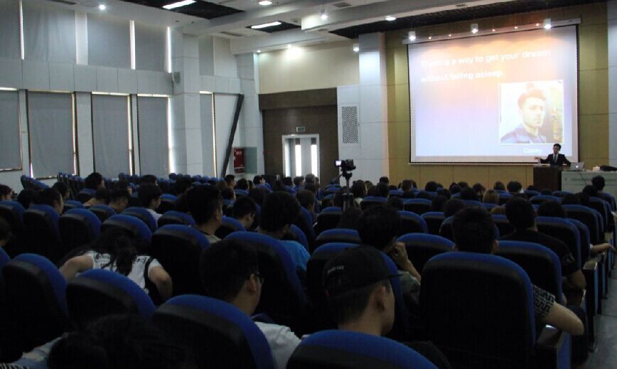 5月19日上午10点在新校区学术报告厅,特邀国际演艺学院2012级影视制作与管理系的谢天与我们学院的学子们进行一次学术交流,Change from my start ! 本期主持人:团委副书记 钟莉 谢天,凭着其敏捷的思维,风趣幽默的表达,阐述着新一代大学生是如何逆袭成长,与其他大学生享受同等受教育的条件下,却有着不一样的经历与收获。挑战不可能,让一切不可能成为有可能,让机遇成为天道酬勤的资本,让今天努力的自己成为明天所要感谢的那个人。在最美好的年龄里, 正值青春年少的我们应该向谢天学习,为了自己的梦想努力。向着未来,用自己的双手去打造那一份属于自己的绚烂。 他的话语激励着我们,一切从改变开始,学会改变自己,走向人生巅峰,你也可以。 To Be a Real Ace in Your Real Age——在最好的年龄里,只为遇见更好的自己。
