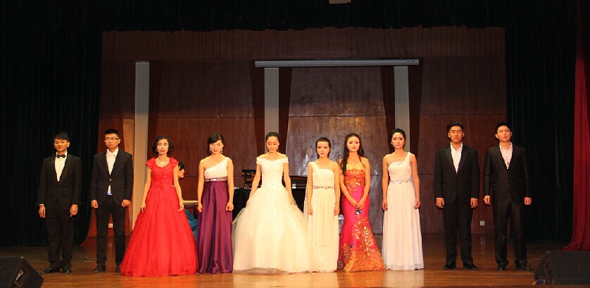 2014年12月19日下午15:00点, beat365在线唯一官网继续教育学院郭蓉蓉、肖新泉教学班音乐会在我院小音乐厅成功举行 。 我院领导李主任,各位老师及同学到场观看。 此次音乐会既让台上的同学锻炼了自己,同时也与台下的同学学习到别人身上的优点,得到了专业上的交流。 开场由女生带来合唱《山楂树》,女生优美柔和的声音唱给人以宁静悠长的感觉。李璐璐同学带来《紫罗兰》《梅娘曲》,前一曲欢快,后一曲悲伤,情感转换十分自然得当。袁红演唱《岁月悠悠》唱出时间飞逝的伤感之情。最后以全体学生合唱《你来了》作为本场音乐会的结束。 音乐会在欢乐和谐的氛围中落下帷幕,同学纷纷与自己的指导教师合影留恋,台下同学纷纷上台献花并留影以作纪念。