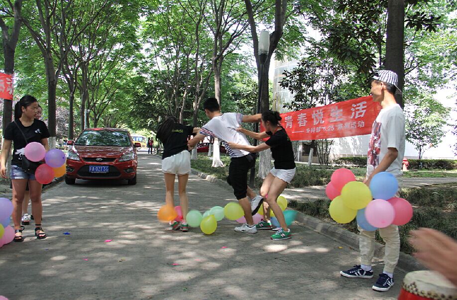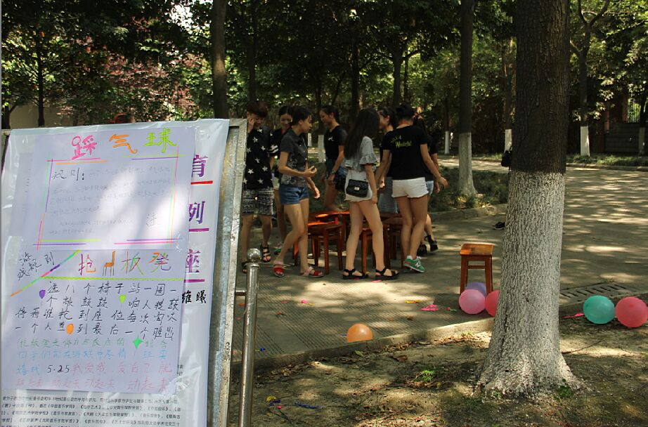 专科部团日系列活动—— “5.25大学生心理健康日”室外素质拓展活动 2015年5月15日15:00时。我系团总支2014级团支部在新都校区二教学楼下“红李树林”开展了“时间都去哪儿了”主题活动 暨“5.25大学生心理健康日”素质拓展活动。 本次活动选择了当代大学生最乐于参与的方式—做游戏,在游戏中让同学们感受健康与阳光。在这片林子里遍布着各个游戏的宣传海报,里面都清楚的写着游戏规则与此游戏对心理健康的意义。每张海报都是由同学们自己设计与制作,其中每个卡通画,每个彩色字都能让大家感到的用心。游戏共有六个“挤眉弄眼,嘟嘴传吸管,抢凳子,你画我猜,踩气球”为了调动大家参加游戏的积极性,系团委还为大家准备了奖券跟礼物。这样的方式也果真奏效,同学们都踊跃的报名参与游戏,积极性很高。本次团日活动通过游戏传递心理健康知识,使同学在游戏中树立起正确的心理健康观念,建立起自信,提高了人际交往能力,有效的促进身心健康。也大大的促进了同学间的友谊。但是,心理健康工作是个长久的工作,此次活动后我们会继续创造性的将心理健康知识的普及工作深入下去,我们将把心理健康教育贯穿于日常生活的始终,让每位同学都能成长为身心健康的合格人才,让每位学子的青春都沐浴到最灿烂的阳光。 让我们一起加油吧!