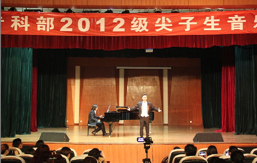 2015年5月28日,我系在beat365在线唯一官网新都校区举行了2012级尖子生音乐会。我院常务副院长姚春城副教授以及全系师生观看了这次音乐会。 本次音乐会主要由声乐专业王江峰、邓李、毛宇翔以及钢琴专业伍晨雪四位尖子生为我们带来表演。即将毕业的2012级学子为我们带来了视听盛宴,邓李的抒情民歌,毛宇翔极具表演的演唱,以及钢琴专业的伍晨雪的抒情弹奏和最后王江峰的压轴,都震撼了我们,为他们三年的努力交了一份满意的答卷。 通过这次音乐不仅让我们看到了四位尖子生优秀的一面,而且也是他们最后一次为我们表演。我们不仅要学习他们的优点,还要比他们更上一层楼。再此也祝愿他们毕业之路一路顺风,在其他地方在创佳绩。