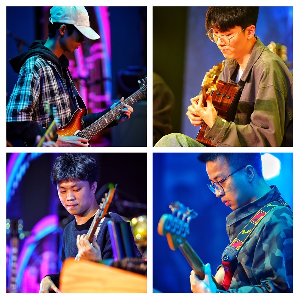 下午3点,第二场活动“学生乐队改编歌/原创作品音乐会”在小音乐厅如期开始,现场吸引了众多师生到场。我院流行器乐系的学生乐队带来了 7 首乐队作品,既有对《下个,路口,见》、《Autumn leaves》等作品所做的不同风格的改编,也有来自流行演唱系和流行器乐系同学自己的原创作品,谭伊哲对每首作品都进行了点评,他对同学们的改编与创作能力给予了高度的评价,并对同学们在舞台表演与作品演绎中存在的一些问题给予指导和演示。