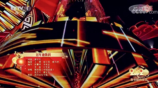 此次演出,我院师生独立担任春晚歌舞类节目《过年迪斯科》的舞蹈表演部分,与艺人张艺兴、陈伟霆、董宝石一起共同为全球观众带来高规格的饕餮盛宴。