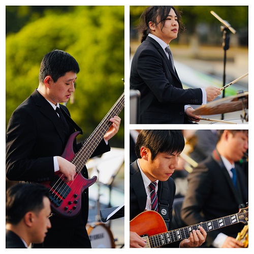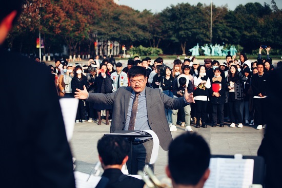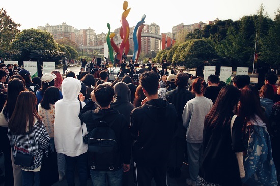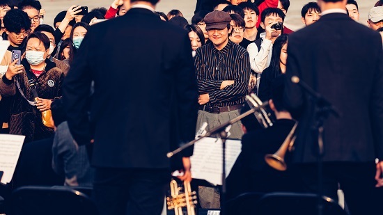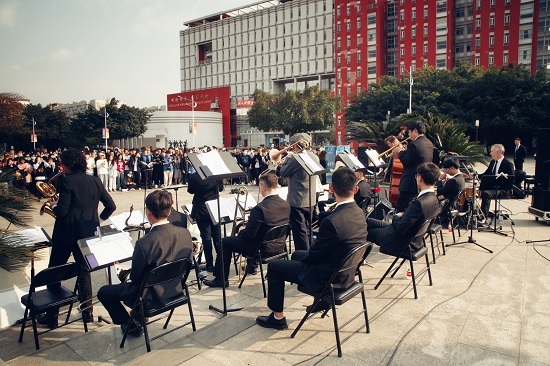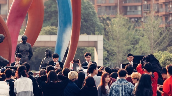 当天下午,暖阳在雨后竟欣然露脸,似乎和我们一样期待着一场精彩的音乐会的上演。下午五点,新都校区喷泉广场上,一首带有浓烈爵士风格的《South》拉开了音乐会的序幕。和煦的春风伴随着优美的音符,吸引了众多师生驻足、观看,他们或席地而坐,或轻摇款摆,用心感受爵士乐的魅力,享受爵士乐带来的愉悦。