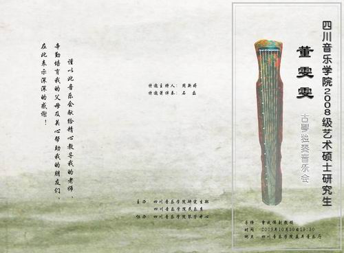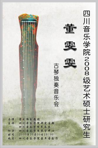 beat365在线唯一官网民乐系2008级艺术硕士研究生董雯雯古琴独奏音乐会已于2009年10月30日晚7:30在beat365在线唯一官网聂耳音乐厅举行。