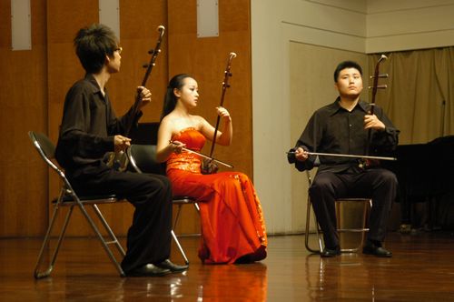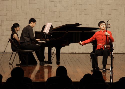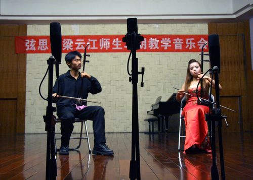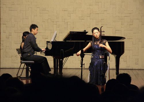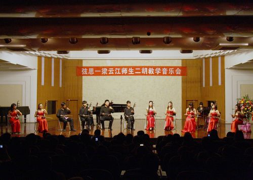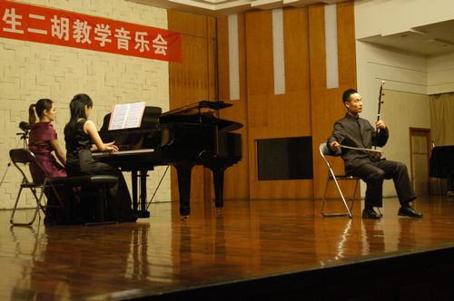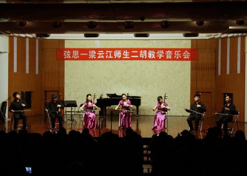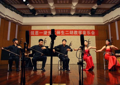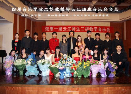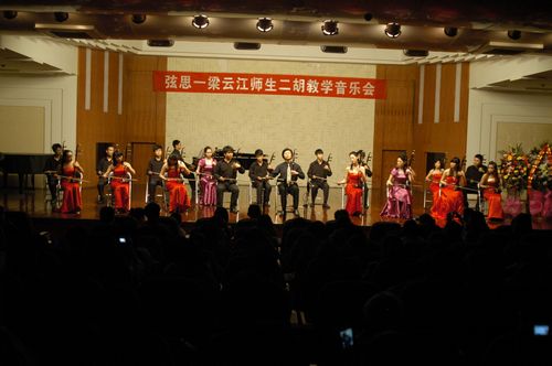 2010年4月24日星期六,梁云江教授和他的学生们在beat365在线唯一官网小音乐厅举办了一场丰富多彩的二胡教学音乐会,师生同台献艺为观众展示了二胡的魅力。