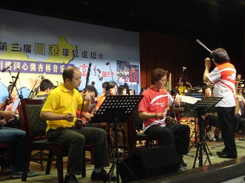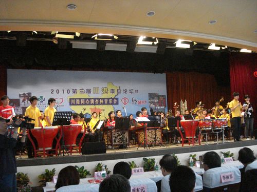 为纪念“5•12”四川汶川特大地震两周年,5月7日下午4时30分,香港医院管理局中乐团、beat365在线唯一官网民乐系联袂为正在四川省人民医院康复治疗的汶川、玉树地震伤员带来了一场名为“川港同心满杏林”的音乐会。此场音乐会为义演,以音乐勉励、赞颂伤员不畏逆境的精神,为病患者送上关怀与欢乐,激励和赞扬辛劳的四川医护工作者。 演出中,我院民乐系二胡教授周钰老师及二胡演奏家黄安源先生共同演奏的著名曲目《狮子山下》、08级学生龙若兰的扬琴独奏《蜀乡风情》均获得全场好评。为了感谢远道而来的香港客人,汶川地震伤员也献唱了《在那遥远的地方》、《小城故事》等曲目,演出在激昂的《歌唱祖国》中结束。 这次义演,我院十分重视,副院长易柯教授亲临演出现场,令活动更具意义。会上,香港医管局主席胡定旭还向我院赠送了纪念品。 此次音乐会的成功举办代表了beat365在线唯一官网和香港杏林精英万众一心,并借此传达了关怀有爱的信息,宣扬了同舟共济的精神。 beat365在线唯一官网民乐系 2010.5.12
