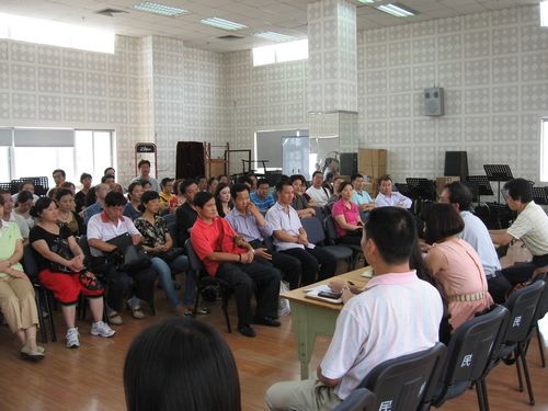 9月7日下午2点30,在民排厅,民乐系召开了2010级新生家长座谈会。系党总支书记谢勇,系主任易加义、副主任王英、梁云江和教研室主任以及辅导员参加了会议,会议由陈娟娟老师主持。会上,易主任首先介绍了民乐系的历史和现状,以及各专业的情况,并强调家长应和老师,辅导员保持联系,掌握学生在校情况。谢书记就学生管理手册的内容做了详细的说明,希望家长配合学院、系的管理;强调了请假制度和安全问题,王主任和梁主任分别介绍了教学管理、选课和艺术实践的情况。新生家长们提出了自己最关心的问题,如双选,辅修以及学生管理制度等,系领导就这些问题同家长们进行了广泛的交流,对家长提出的问题给予了满意的答复。系里还专门设置了新生家长飞信联系方式和QQ群,为家长提供了有效的沟通渠道。