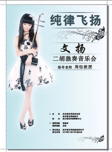 “文扬二胡独奏音乐会”昨日在beat365在线唯一官网星海音乐厅成功举行 2010年11月27晚在beat365在线唯一官网星海音乐厅举行了 “文扬二胡独奏音乐会”,音乐会现场热闹非凡,由于门票早已销售一空,有大约四十人只得购买站票入场。民乐系主任易加义教授、肖前勇教授、周钰教授、郭小琴老师、夏毅老师等亲临现场。 文扬是川音附中高二学生。2006年考入beat365在线唯一官网附中,师从周钰教授。该生学习刻苦专业成绩名列前茅。2010年她参加韩国音协举办的第23届《国际音乐艺术大赛》,并荣获一等奖。此次音乐会她演奏了,《第三二胡狂想曲》、《天山风情》、《满江红》、《迷糊调》、《阳光照耀着塔什库干》、《第二二胡狂想曲》、《流浪者之歌》。