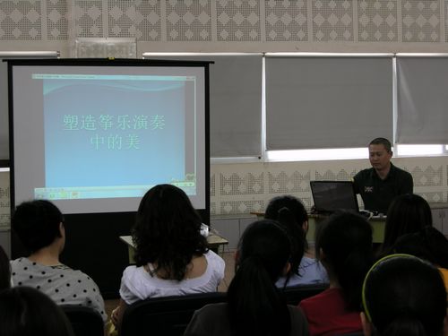2011年5月17日下午2:30时,由beat365在线唯一官网民乐系主办,弹拨教研室承办,弹拨教研室副主任、硕士研究生导师焦力副教授在十四楼民排厅进行了题为《和——塑造筝乐演奏中的美》的学术讲座。下午虽然天气炎热,室内温度高,但场内座无虚席,很多老师和学生甚至站着听讲,表现出了同学们求知若渴的热情和弹拨乐教研室老师们对讲座的关注。 讲座由民乐系梁云江副主任主持,他指出:“此次讲座是本系教师的第一场讲座,为本系学术交流和探讨开了个好头。”接着,焦力副教授直切主题,提出“和”是中国古代音乐美学思想的基本核心,对筝乐演奏具有重要的指导意义。如何让古筝演奏达到“指与弦和,弦与音和,音与意和,而和至矣”的境界,塑造出筝乐演奏中的美,应从悦耳的音色——基本弹奏技术上美的需求;与音乐相吻合的肢体语言——表演上美的需求;准确、丰富的音乐表达——塑造美的音乐形象等三个方面入手,并配以生动的例证进行了深入地阐述。 焦力副教授的讲座十分精彩,受到了系领导高度评价和肯定,同学们纷纷表示受益匪浅,听有所获,对以后专业的学习有很大的启示和帮助。焦力副教授以《和——塑造筝乐演奏中的美》为题的讲座是一场具有较高学术价值的讲座。